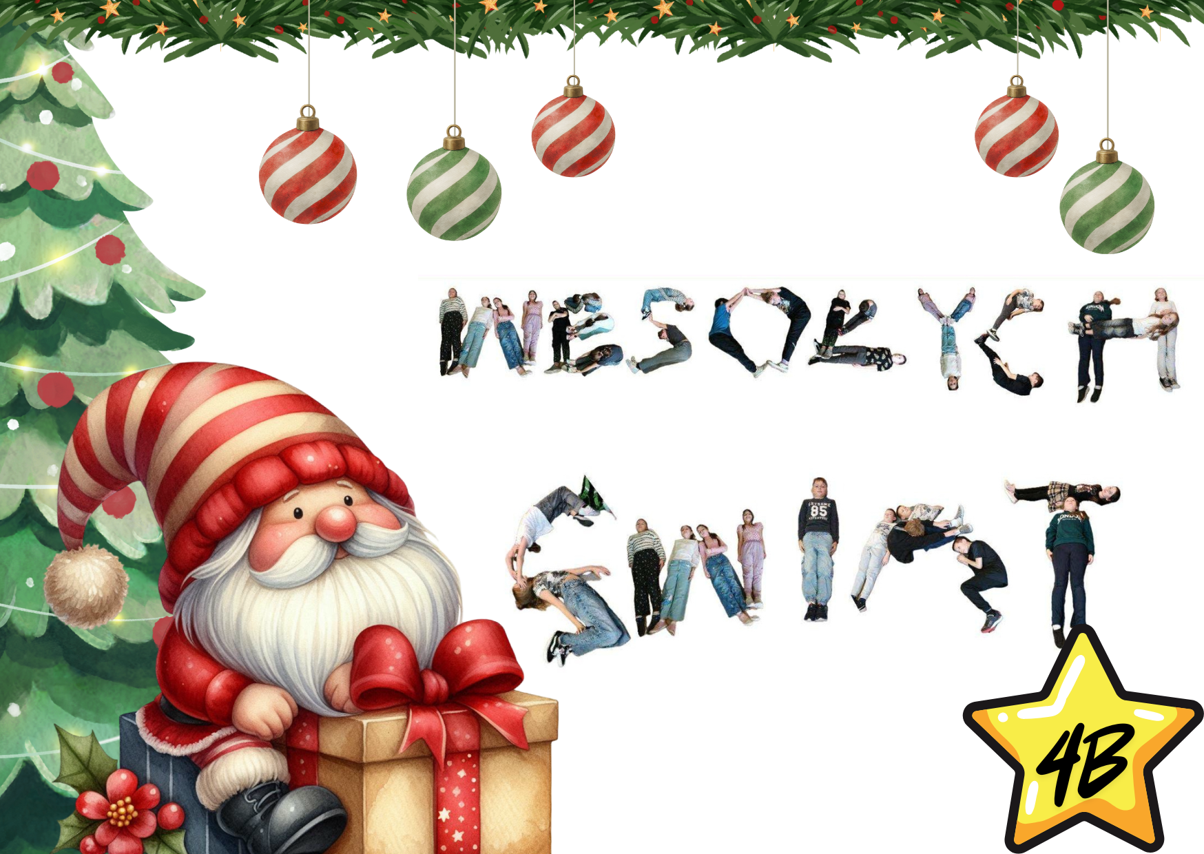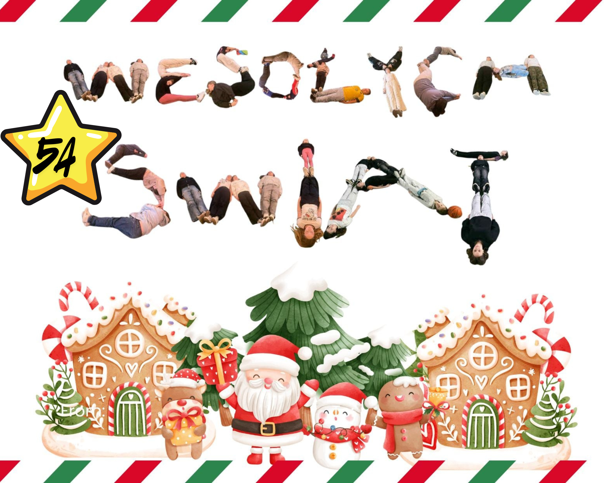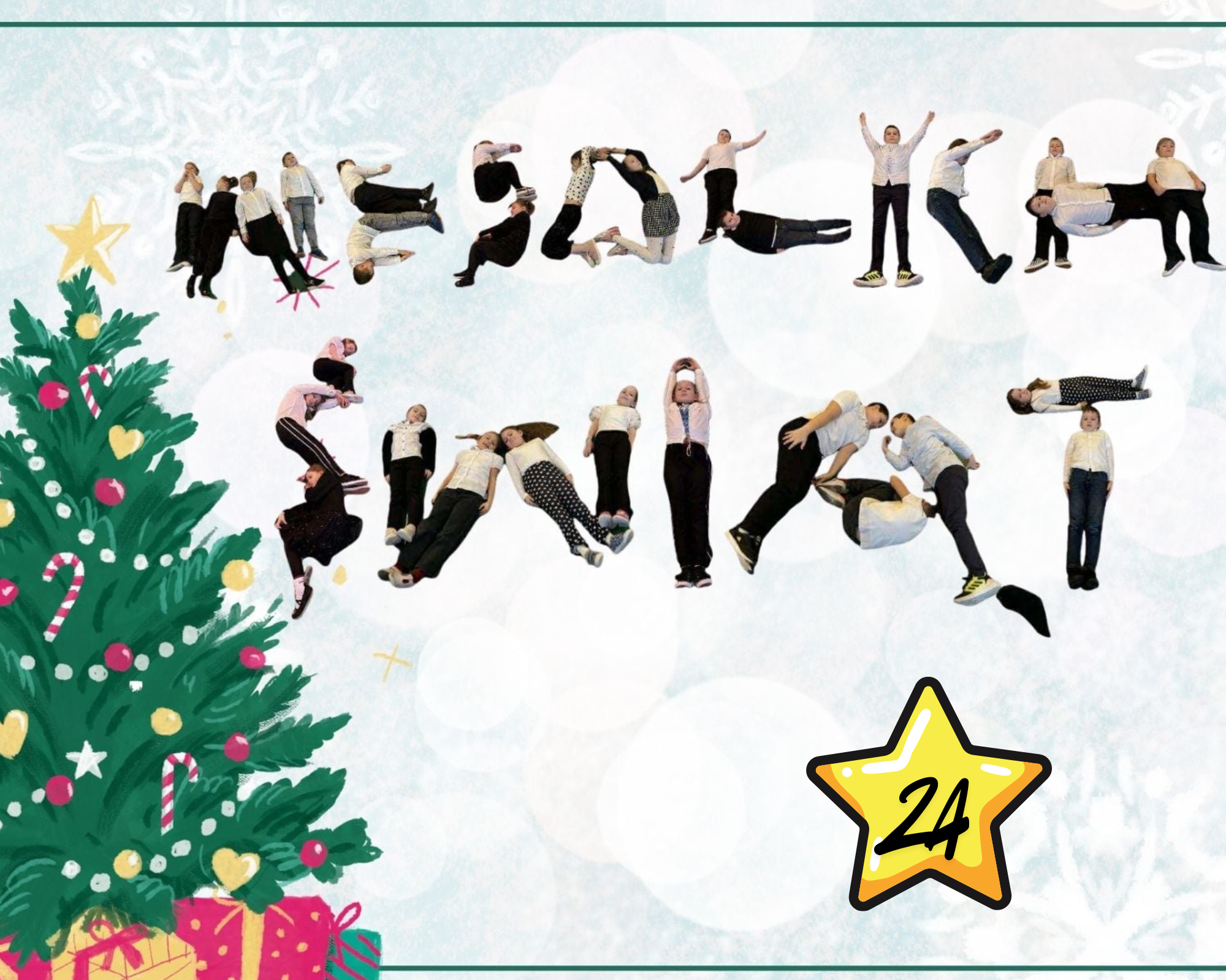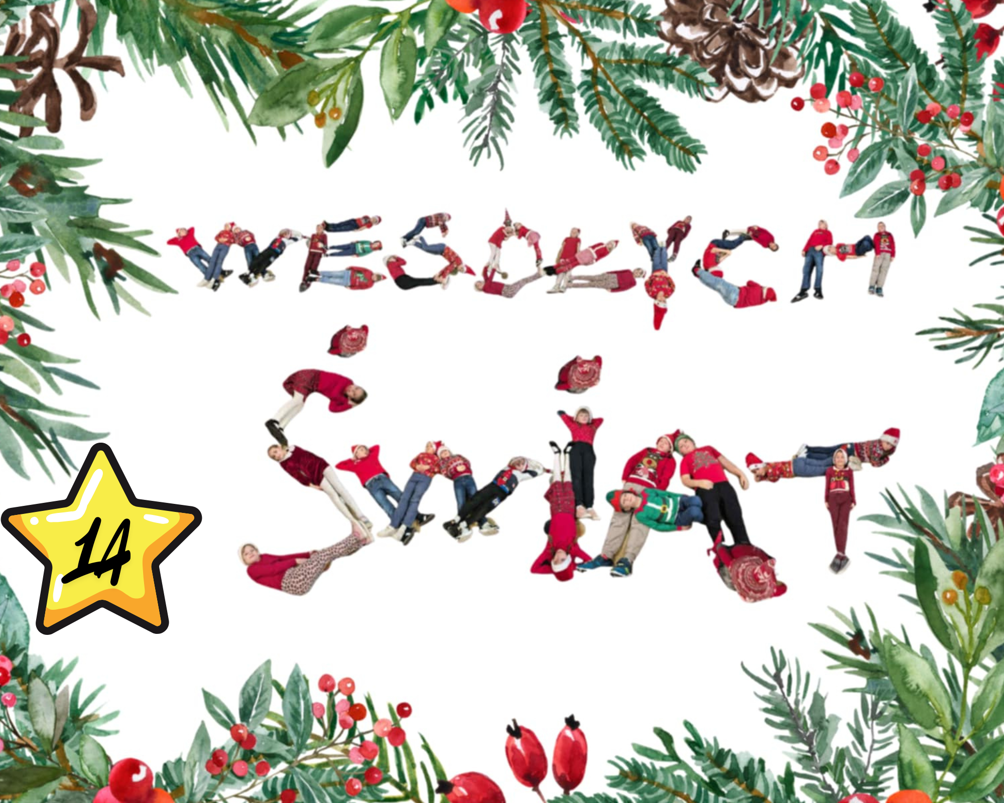 #Świąteczny Challenge Klasowy – zad. 5 – Napis „Wesołych Świąt” utworzony z dzieci
