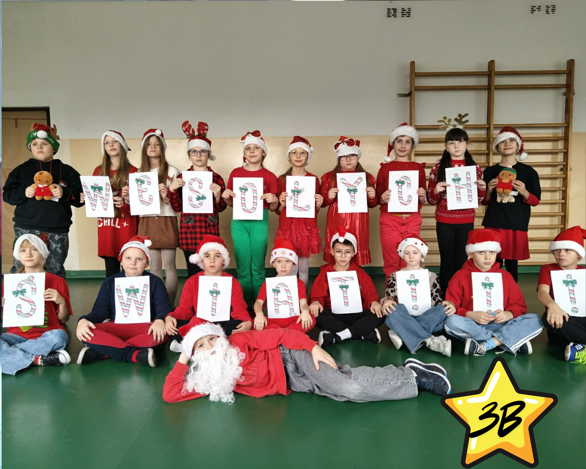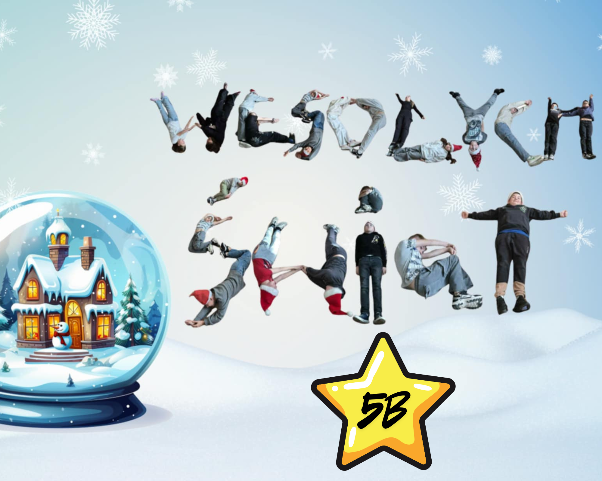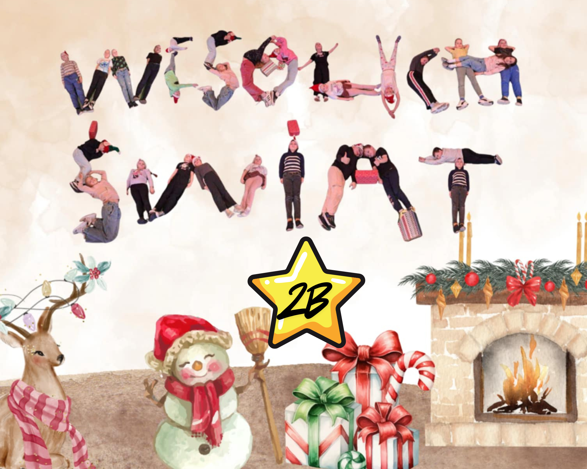 #Świąteczny Challenge Klasowy – zad. 5 – Napis „Wesołych Świąt” utworzony z dzieci