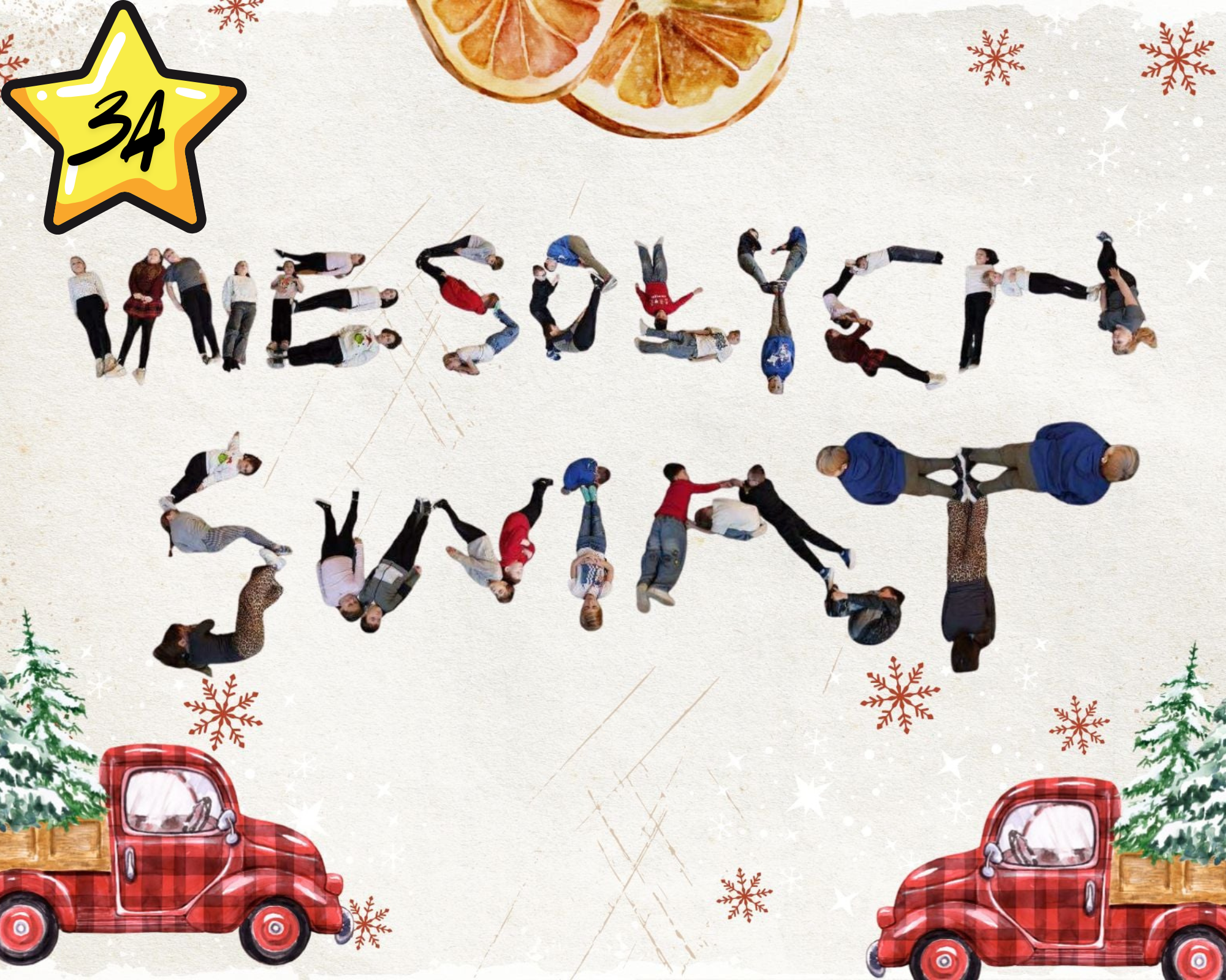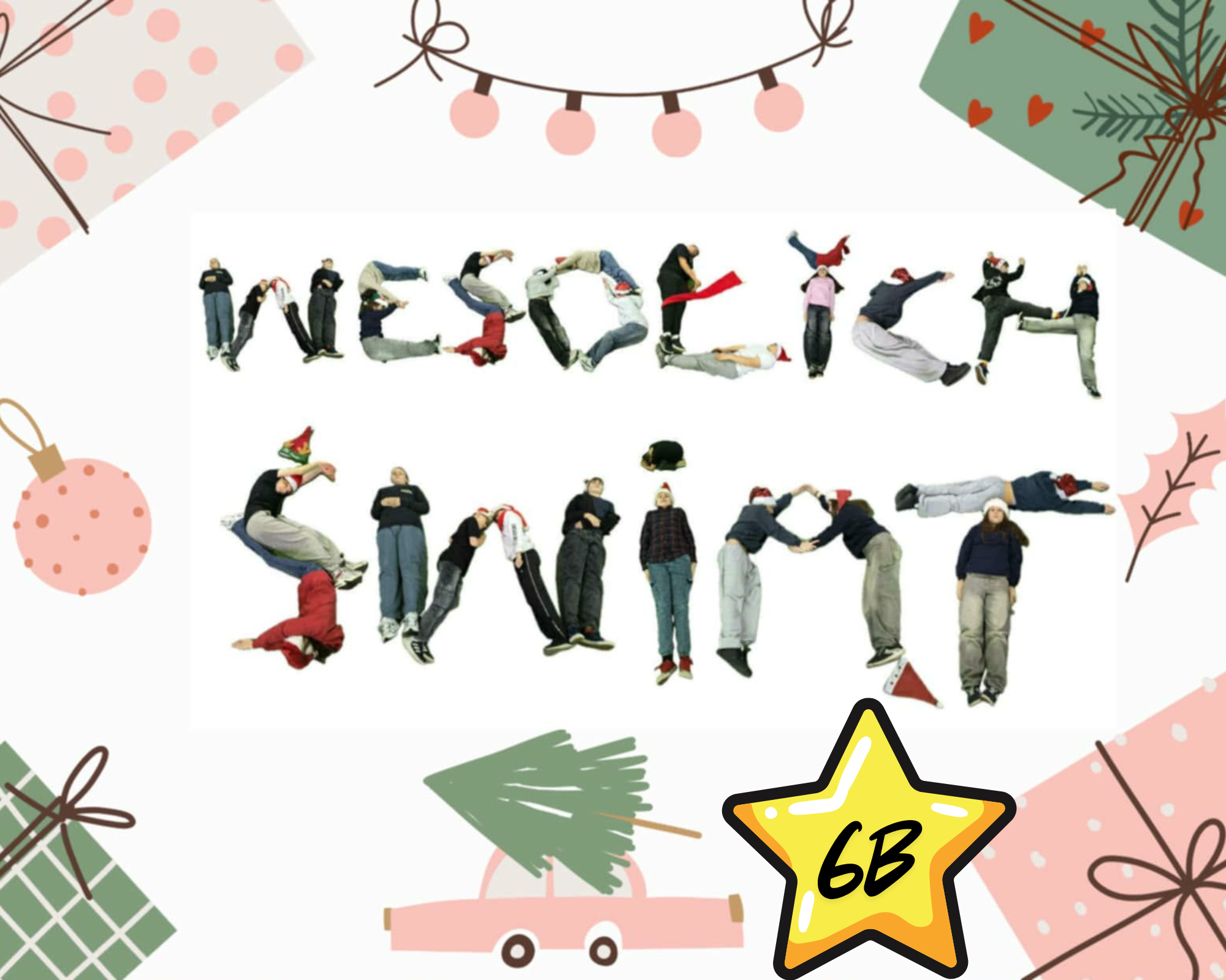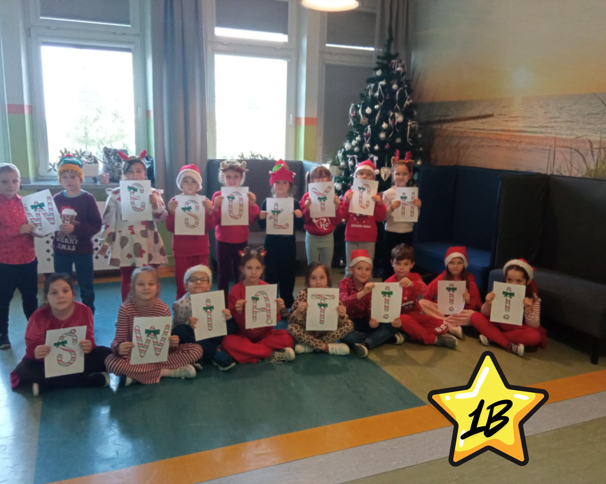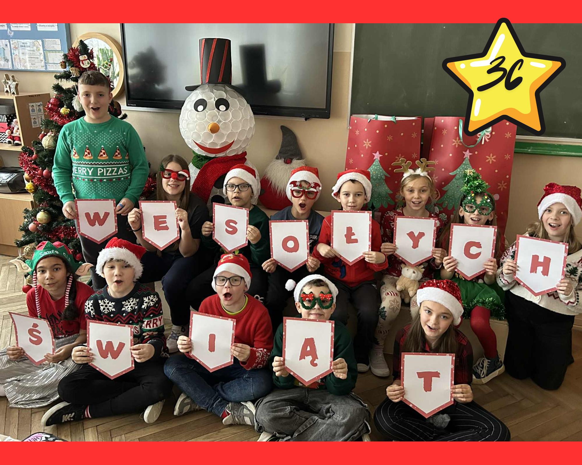 #Świąteczny Challenge Klasowy – zad. 5 – Napis „Wesołych Świąt” utworzony z dzieci