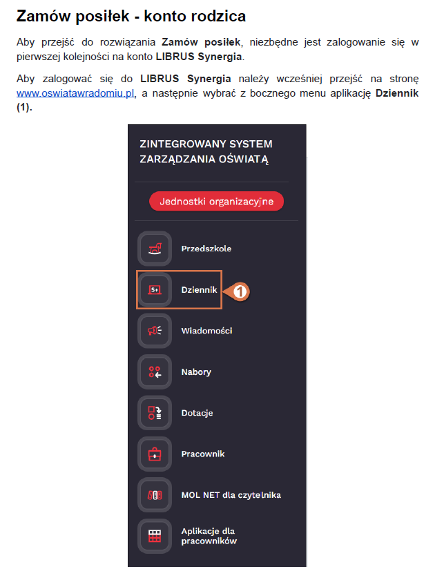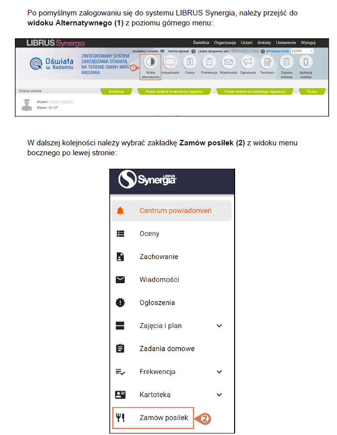 Informujemy, że zakładka „zamów posiłek” nie jest dostępna w aplikacjach mobilnych Librus.