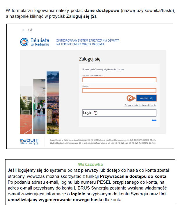 Należy zalogować się do dziennika LIBRUS na konto dziecka, na stronie http://www.oswiatawradomiu.pl następnie wejść w ikonę „widok alternatywny” (u góry ekranu) i postępować według poniższych kroków: